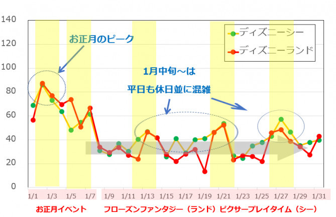ディズニー 1月 混雑